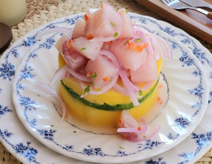 La causa acevichada es un plato que combina dos de los platos más populares del Perú: la causa limeña y el ceviche. Esta elaboración mezcla la suavidad y la textura aterciopelada de la papa con la frescura del ceviche, creando una fusión cítrica que es una explosión de sabores en cada bocado. queremos enseñarte cómo hacer causa acevichada. ¡A cocinar!