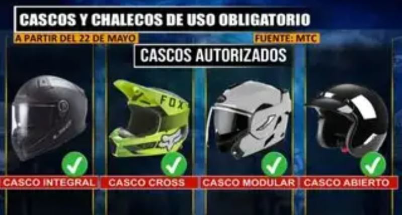 A partir mañana jueves 22 de mayo, todos los motociclistas que circulen por Lima Metropolitana y el Callao deberán portar de forma obligatoria un chaleco reflectivo y un casco que lleven impresa la matrícula del vehículo. Esta medida, implementada por el Ministerio de Transportes y Comunicaciones (MTC), busca reducir los delitos cometidos a bordo de motocicletas.