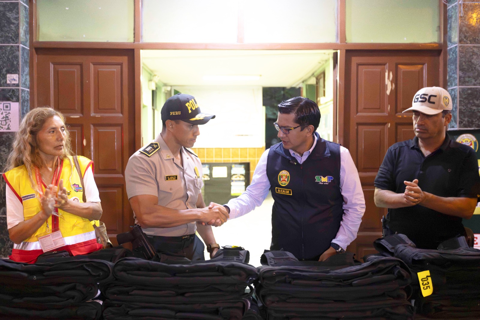 “Estamos en la comisaría de Barboncitos asumiendo el compromiso que tuvimos en algún momento de poder entregar estos chalecos antibalas a modo de préstamo a nuestra Policía Nacional (…) El comisario ha gestionado y articulado con nosotros, con la municipalidad, para poder entregarles estos chalecos”, indicó el alcalde Hernán Sifuentes.