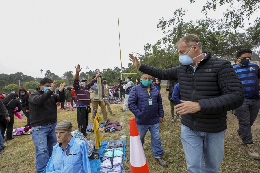 El alcalde de Lima, Jorge Muñoz, supervisó el inicio de las actividades en el club zonal Huayna Cápac, uno de los dos espacios temporales donde fueron reubicados más de 1,300 comerciantes informales que ocupaban los alrededores del emporio comercial de Gamarra y vías de alto tránsito en San Juan de Miraflores, como la Av. San Juan o la Av. Los Héroes.
