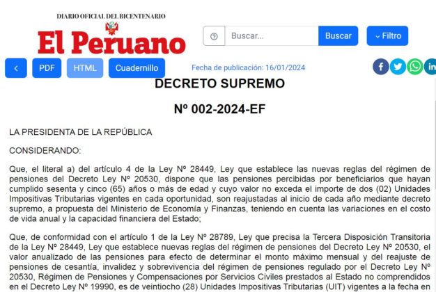 Dado en la Casa de Gobierno, en Lima, a los quince días del mes de enero del año dos mil veinticuatro.