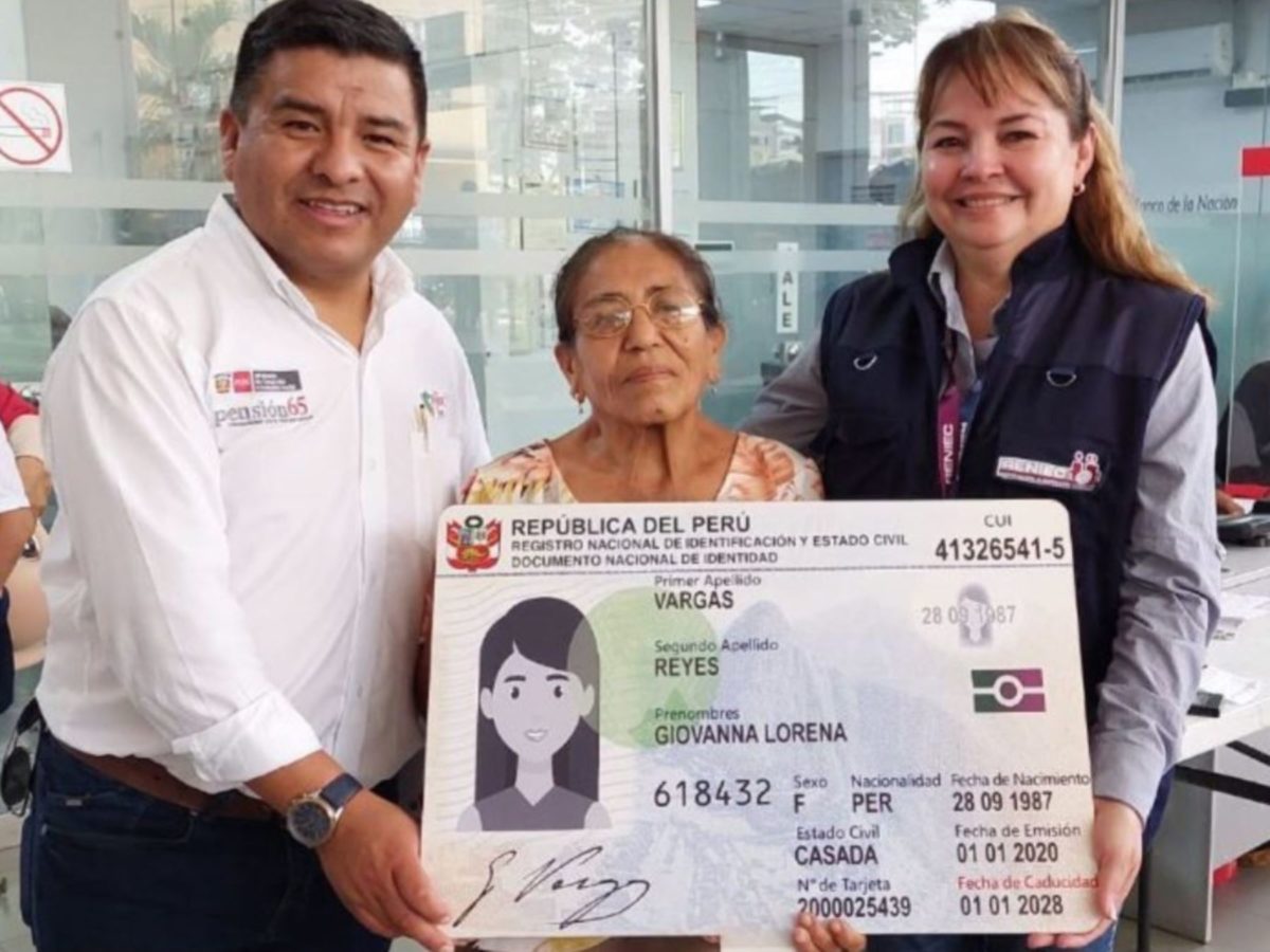El Registro Nacional de Identificación y Estado Civil (Reniec) emitió documentos de identidad electrónicos (DNI electrónicos) para los beneficiarios del Programa Pensión 65 en el marco de la iniciativa Pagatón del Ministerio de Desarrollo e Inclusión Social (Midis).