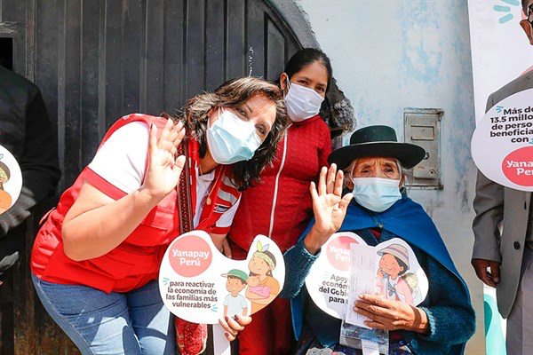 La titular del Ministerio de Desarrollo e Inclusión Social (Midis), Dina Boluarte, supervisó en Ica la jornada de entrega del bono Yanapay por medio de los ‘carritos pagadores’ y las intervenciones que ejecutan los programas sociales del sector a los pobladores que viven en situación de pobreza y de pobreza extrema.