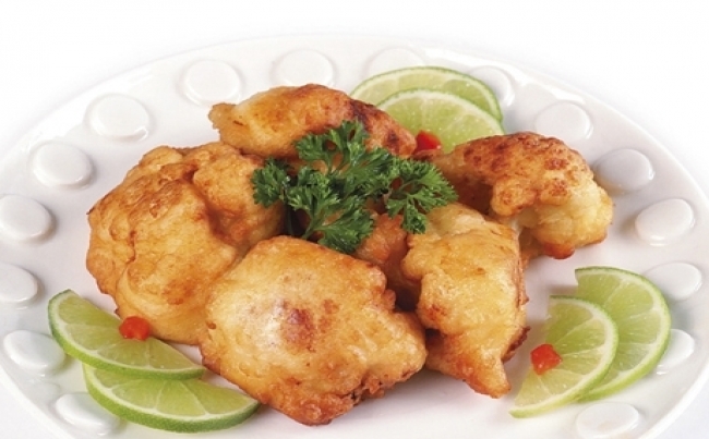 Macere los ramos de coliflor en aceite, limón, sal y pimienta durante una hora. Prepare los buñuelos llevando a hervir la leche con la margarina y la sal; incorpore luego, de una vez, la harina. Revuelva enérgicamente con una espátula de madera. Retire del fuego y añada los huevos, uno por uno. Mezcle bien. Pase las ramos de coliflor por esta masa y fría en aceite caliente.