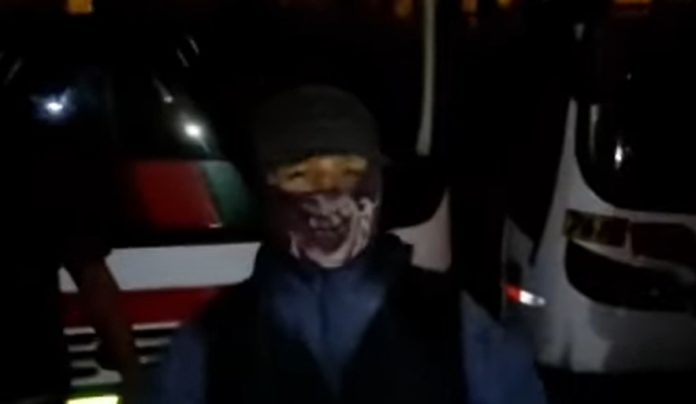El video intimidatorio fue grabado en el local donde los conductores estacionan sus unidades durante la noche, disparando contra ellas en varias ocasiones.