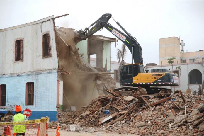 La ministra de Educación, Magnet Márquez, supervisó los trabajos de demolición de la antigua institución educativa 0035 Nuestra Señora de la Visitación, en el Cercado de Lima, uno de los cuatro colegios de la capital que tendrán un nuevo y moderno local como parte del proyecto Escuelas Bicentenario, que abarca un total de 75 en nueve regiones y que reducirá la brecha de infraestructura educativa con una inversión estimada de 5,900 millones de soles.