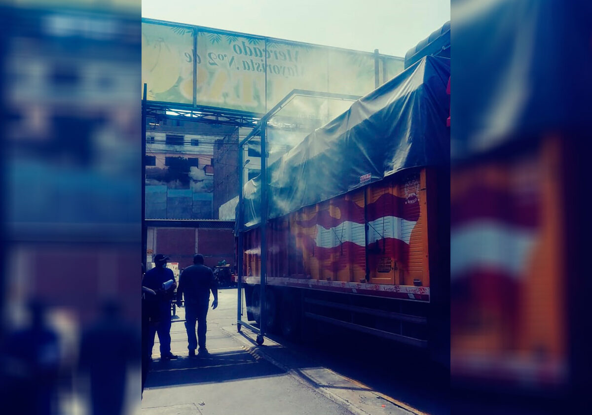 Una buena noticia para comerciantes mayoristas, minoristas y amas de casa, pues el Mercado Mayorista de Frutas ubicado en La Victoria es el primer centro de abastos en implementar el sistema de nebulización para desinfectar los camiones que llegan hasta este lugar con la mercadería del día.
