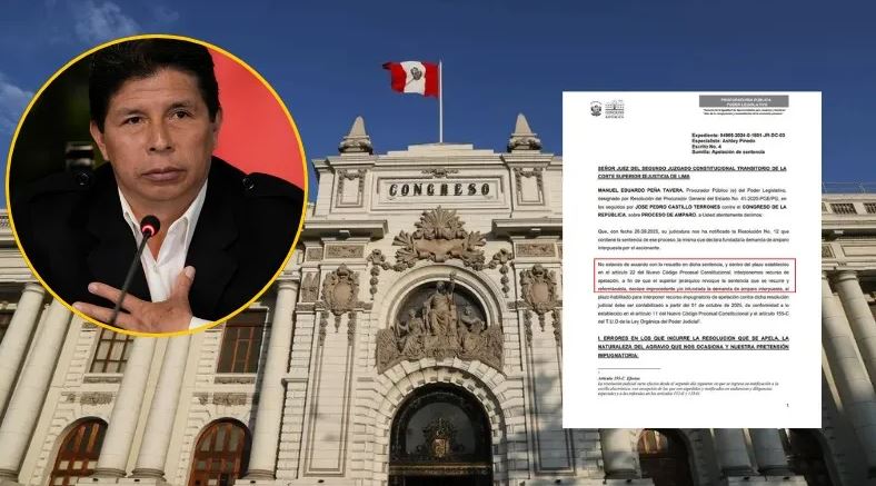 La Procuraduría Pública del Congreso de la República apeló la resolución judicial que ordena al Poder Legislativo otorgar una pensión vitalicia al expresidente Pedro Castillo, desde el 8 de diciembre de 2022, con todos los beneficios inherentes.