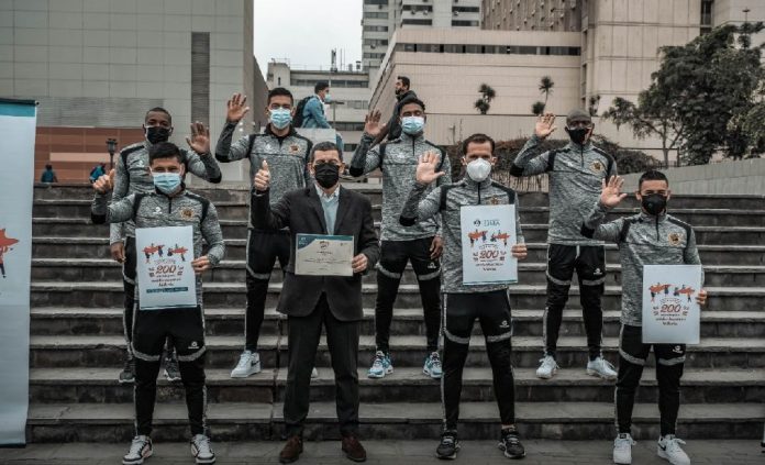Royer Villano,Jair Céspedes, Eder Hermoza, Jhoel Herrera – Jefe de equipo y Gustavo Zevallos – Gerente deportivo se unieron a la iniciativa de la Municipalidad de Lima que promueve la identidad cultural y el ejercicio de ciudadanía en el marco de los doscientos años de nuestra república.