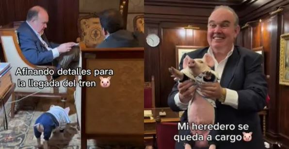 El alcalde de Lima, Rafael López Aliaga, sorprendió al anunciar que su ‘cerdito’ quedará al mando de la Municipalidad Metropolitana de Lima (MML) durante sus días en Estados Unidos (EE. UU.), país al que viajará con el fin de supervisar la salida del primer embarque de material ferroviario donado por la empresa Caltrain de California para el futuro tren Lima-Chosica.