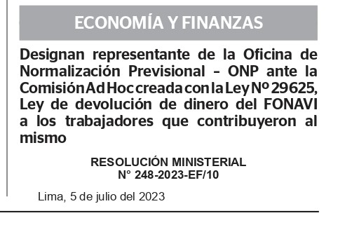 MEF DESPUES DE 17 DÍAS, DESIGNO AL NUEVO REPRESENTANTE DE LA ONP ANTE LA COMISIÓN AD HOC
