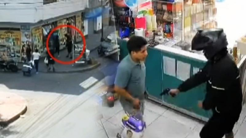 Las cámaras de seguridad en El Agustino grabaron el momento en que un delincuente disparó a un empleado de un bazar luego de que este se negara a entregar su teléfono celular y el dinero del local.