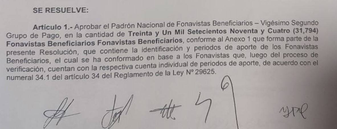 Ayer lunes 15 de diciembre, la comisión Ad Hoc para la devolución de las aportaciones al Fonavi que preside el ingeniero José Cortez Vigo, firmó la resolución administrativa N° 1162 – 2025 y que deja expedito el pago al grupo 22 el jueves 18 de diciembre.