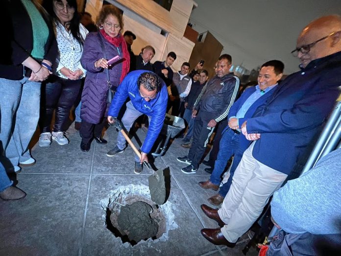 En un hecho que marca un hito para los vecinos de la urbanización Ciudad del Pescador, el teniente alcalde de Bellavista, Gregory Cáceres, junto al alcalde Alex Callán, colocaron la primera piedra de una esperada obra de mejoramiento urbano que beneficiará a los residentes de la Junta Vecinal del Parqueo Los Cachorros y La Amistad.