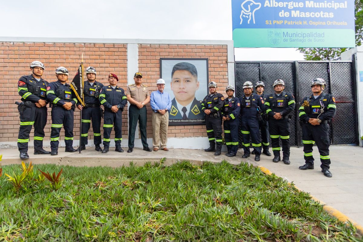 La Municipalidad de Santiago de Surco y la Policía Nacional del Perú rindieron un homenaje póstumo al suboficial de primera PNP Patrick Ospina Orihuela en el Albergue Municipal de Mascotas, que desde hoy lleva su nombre como reconocimiento eterno a su sacrificio: entregar su vida cumpliendo su deber, al intentar rescatar un perro atrapado en el río Rímac.