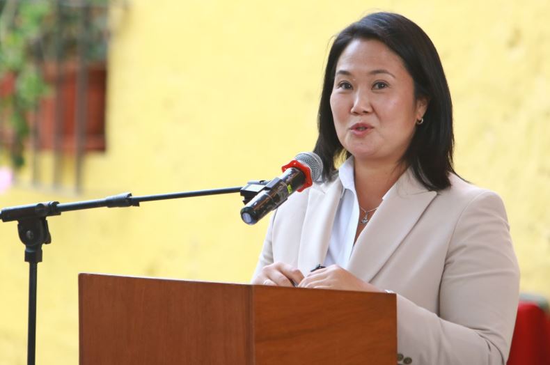 Keiko Fujimori, lideresa de Fuerza Popular, alertó a la comunidad internacional sobre el pedido de la fiscal de la Nación, Delia Espinoza, de cancelar la inscripción de Fuerza Popular por presunta «conducta antidemocrática».