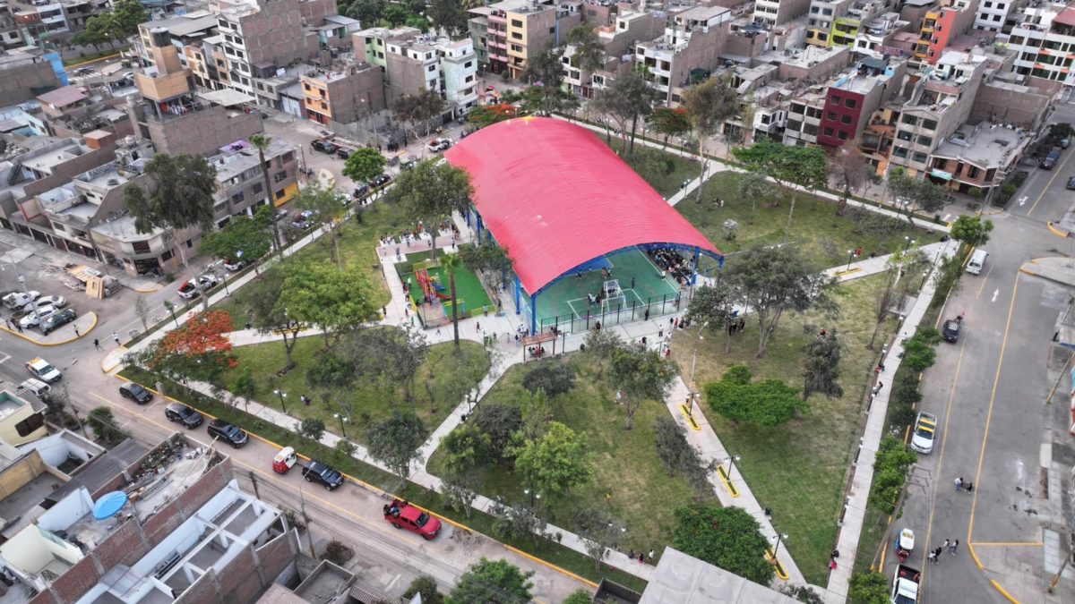 Descripción de la obra: Mejoramiento de la losa deportiva construcción de tribunas, instalación de 6 unidades de reflectores, cobertura metálica, instalación de juegos infantiles, gimnasio, instalación de 67 farolas para una eficiente iluminación, bancas de concreto, pérgolas, veredas de concreto y adoquín, y sembrado de grass sintético. Con un monto de inversión de más de 1 millón de soles.