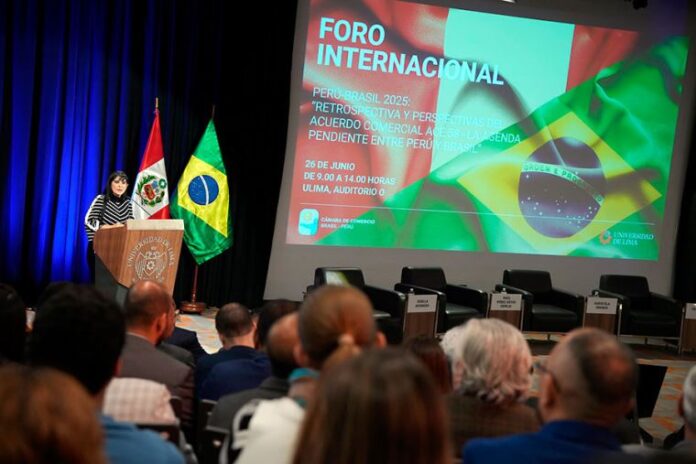 La ministra de Comercio Exterior y Turismo, Desilú León, anunció la urgente modernización del Acuerdo de Complementación Económica N°58 con el Mercosur durante el foro internacional «Perú-Brasil: Retrospectiva y Perspectivas».
