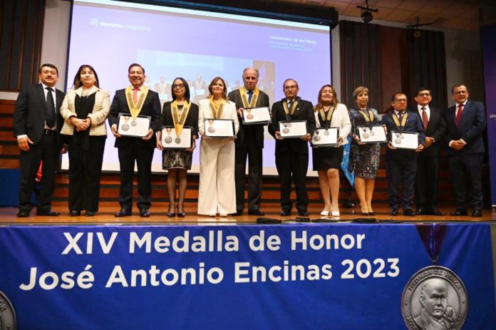 El viernes 17 de noviembre se desarrolló la ceremonia de la XIV Medalla de Honor José Antonio Encinas, reconocimiento institucional de la Derrama Magisterial, que rinde homenaje a los maestros y personalidades de destacada trayectoria y aporte en el sector educativo. En este, se realizó la entrega de 8 medallas, para los ganadores de las categorías Grado Gran Oficial y Grado Gran Cruz.