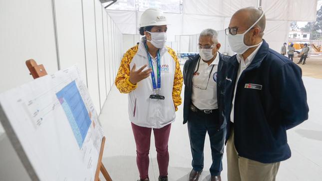 El ministro de Salud, Víctor Zamora, inspeccionó la construcción del nuevo centro de atención y aislamiento Covid-19 ubicado en la zona de expansión del hospital Hipólito Unanue, el cual contará con 100 nuevas camas hospitalarias a fin de ampliar la oferta para los pacientes con esta enfermedad.