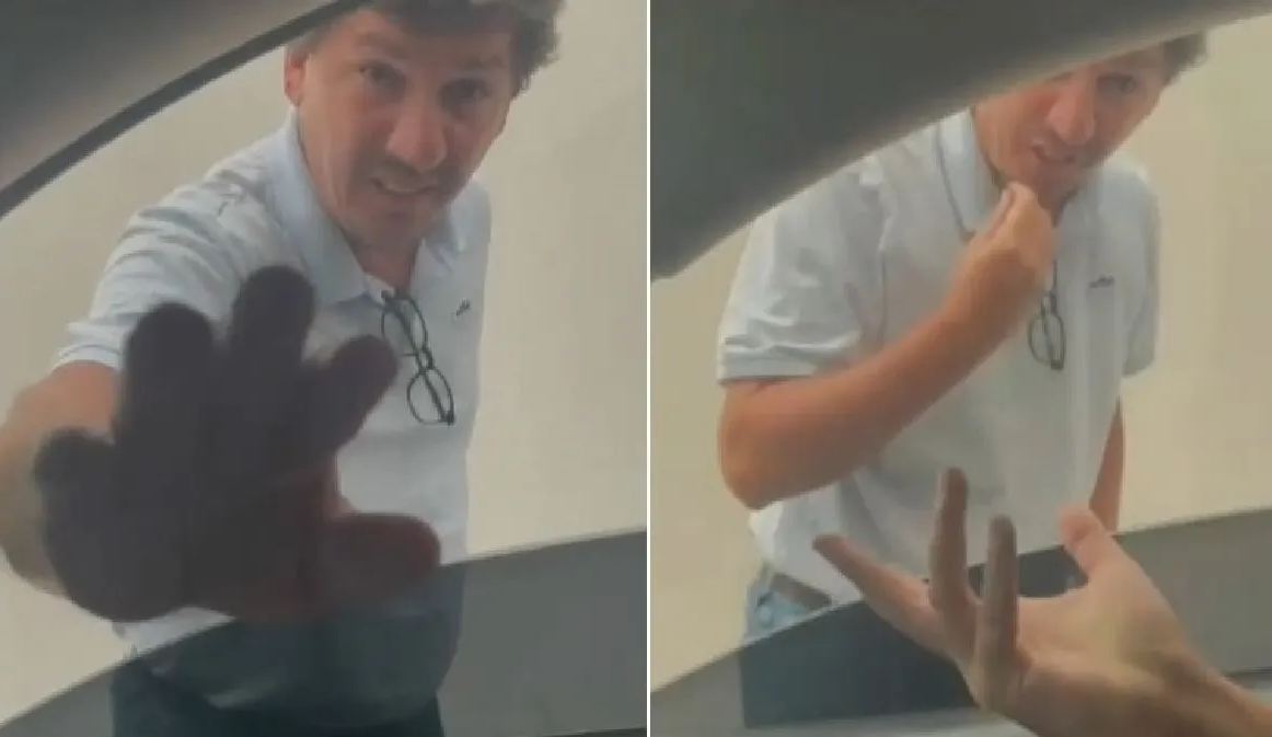 Según su versión, Ferrari salió de manera agresiva del inmueble y se dirigió a su vehículo. Entonces fue cuando decidió prender la cámara de su celular para grabarlo.