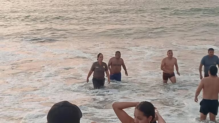 Policía acudió al rescate ante gritos de auxilio de los familiares que se estaban ahogando en la playa Besique