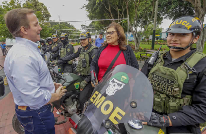 “Más policías motorizados del Escuadrón Verde y Los Halcones en el distrito desde hoy hasta el 31 de diciembre, para que nuestros vecinos hagan sus compras con tranquilidad y los comerciantes también estén tranquilos en sus negocios.”, expresó Francis Allison.