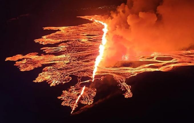 La IMO explicó que poco después de la medianoche, la lava fluyó por la carretera de la evacuada ciudad de Grindavík hacia la tubería de agua de la central eléctrica de Svartsengi.