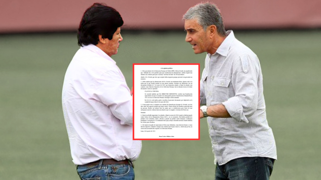 «Se acuerda que el director deportivo recibirá una bonificación equivalente a lo que se acuerde con cada jugador de Clasificatorias – Rusia 2018, en caso la Selección Peruana clasifique a dicho Mundial», se lee en el documento.  El escrito lleva las presuntas firmas de Edwin Oviedo, entonces presidente de la FPF, y de Juan Carlos Oblitas, director deportivo de la bicolor.