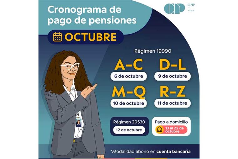 Considerando la primera letra del apellido paterno, la ONP ha programado las siguientes fechas de pago: