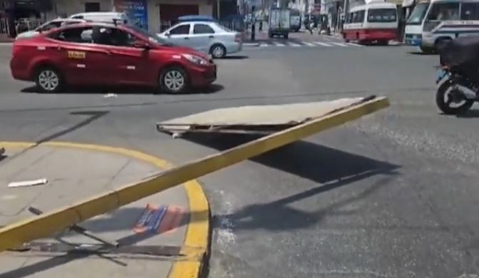 Dos personas resultaron heridas tras la caída repentina de un panel publicitario. El accidente ocurrió en el cruce de las avenidas Malecón Checa con Chinchaysuyo, en el distrito de San Juan de Lurigancho. Cámaras de seguridad captaron el preciso momento en que la estructura y el parante caen sobre dos personas que caminaban en la zona. Asimismo, el panel golpeó un auto que circulaba por la pista sin dejar daños.