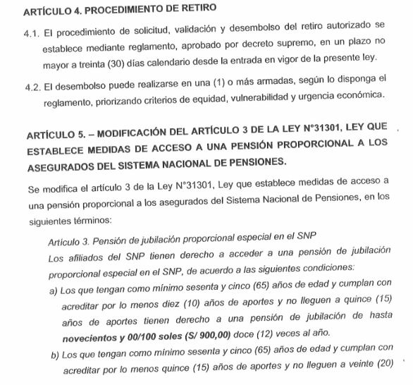 Pero la iniciativa de Podemos Perú incluye aún más. EN SU QUINTO ARTÍCULO PROPUESTA SE BUSCA MODIFICAR EL ARTÍCULO 3 DE LA LEY N° 31301, Ley que establece medidas de acceso a una pensión proporcional a los asegurados del Sistema Nacional de Pensiones.