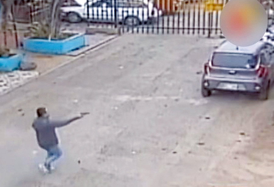 Tal como se ve en las imágenes captadas por las cámaras de seguridad del distrito, la víctima de la persecución estaciona su vehículo en el frontis de su vivienda, mientras que un sujeto – no identificado – baja de un automóvil que transita en la calle paralela.