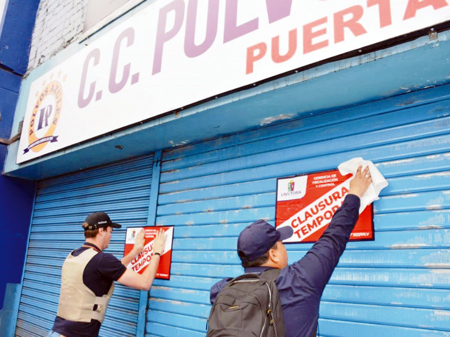 Junto al alcalde Forsyth, personal edilicio ejecutó el cierre con el apoyo de efectivos de la Policía Nacional y colocó carteles de clausura en las puertas del recinto, que acoge a aproximadamente 5,000 comerciantes de diversos rubros.