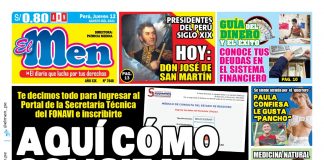Portada impresa Portada (10-08-2018) Por Redactor web - 10 agosto, 2018 0 2332 Facebook Twitter Pinterest WhatsApp Telegram JUBILADOS, DAMOS FECHAS DE PAGO DE SUS S/ 320 Y S/ 300 Son de las dos bonificaciones que les falta cobrar en este 2018 JUBILADOS, DAMOS FECHAS DE PAGO DE SUS S/ 320 Y S/ 300 Son de las dos bonificaciones que les falta cobrar en este 2018