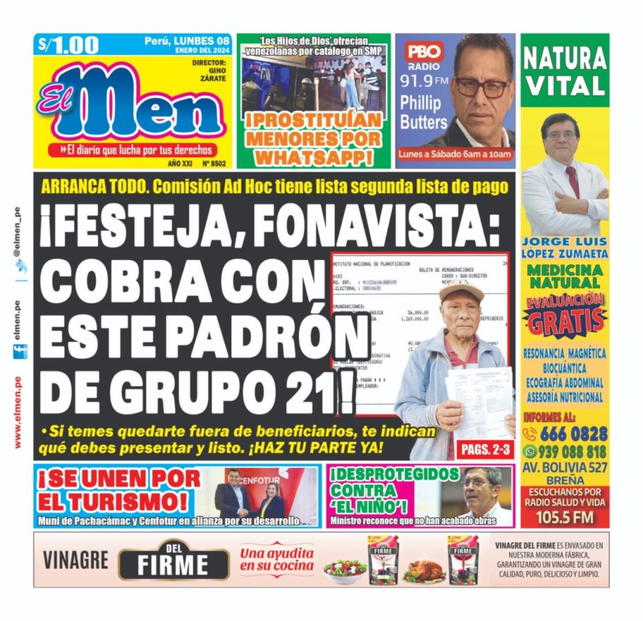 Portada Diario El Men (08/01/2024)