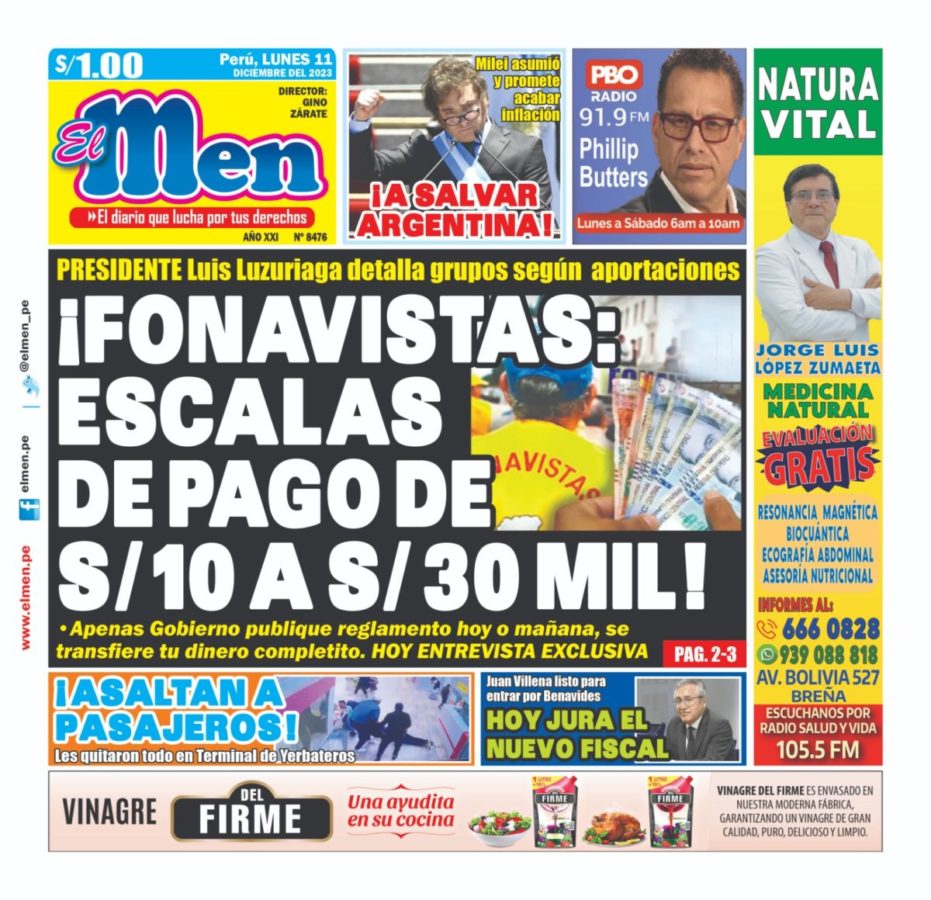 Portada Diario El Men (11/12/2023)