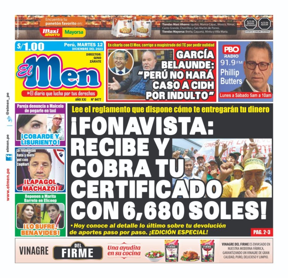 Portada Diario El Men (12/12/2023)