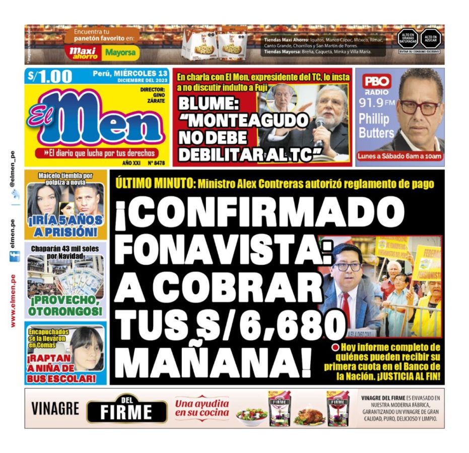 Portada Diario El Men (13/12/2023)