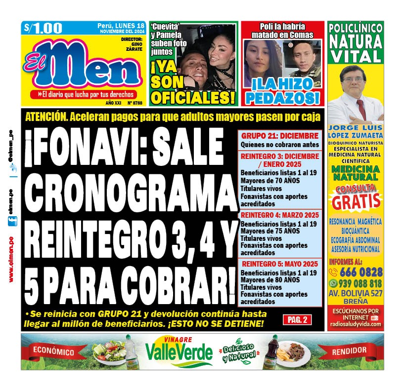 Portada Diario El Men (18/11/2024)