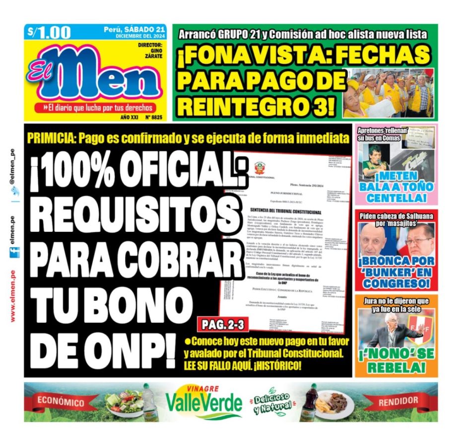 Portada Diario El Men (21/12/2024)
