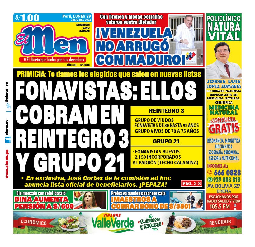 Portada Diario El Men (29/07/2024)