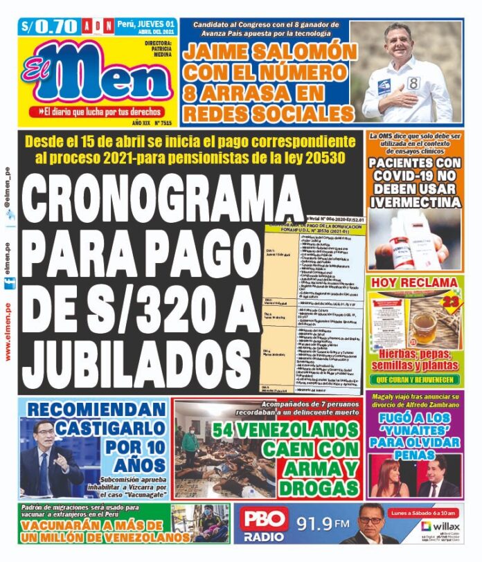 Portada impresa – Diario El Men (01/04/2020)
