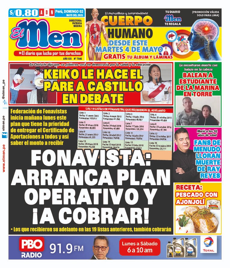 Portada impresa – Diario El Men (02/05/2020)