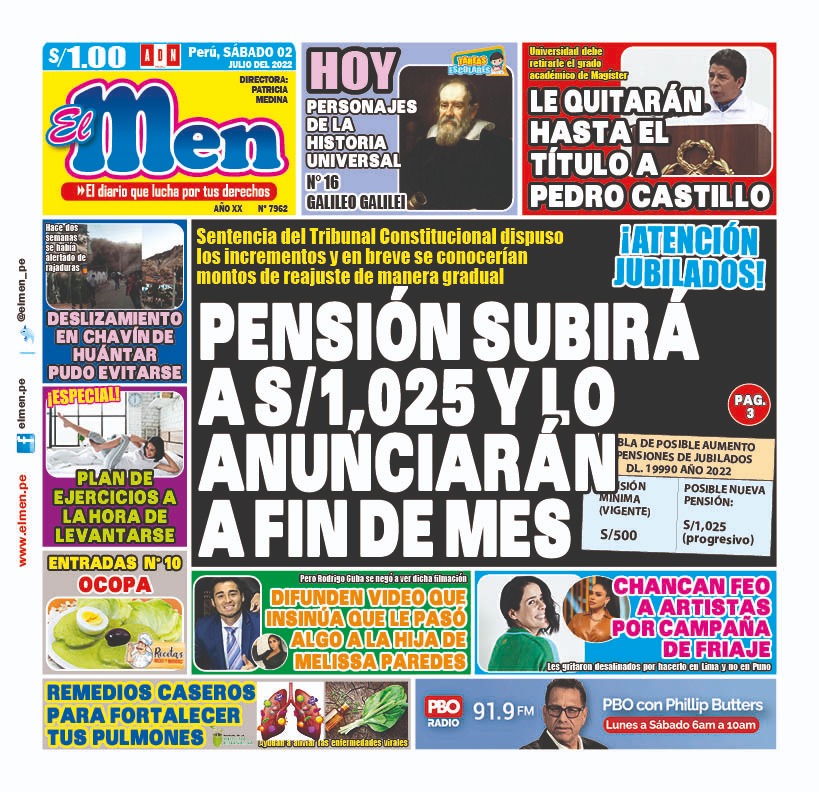 Portada impresa – Diario El Men (02/07/2022)