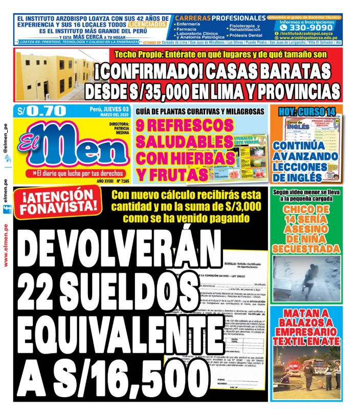 Primera edición: 14 de mayo del 2001 LECTORIA DIARIA: 360,000