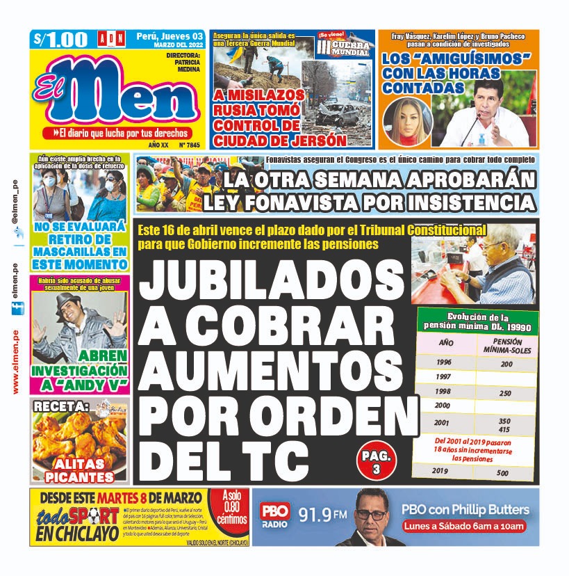 Portada impresa – Diario El Men (03/03/2022)