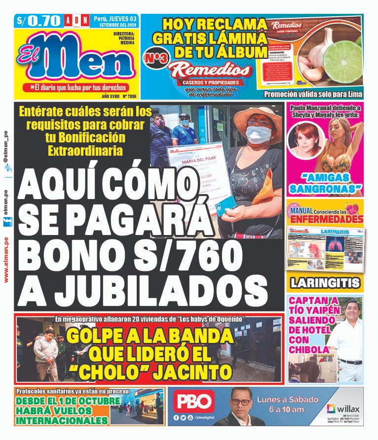 Portada impresa – Diario El Men (03/09/2020)