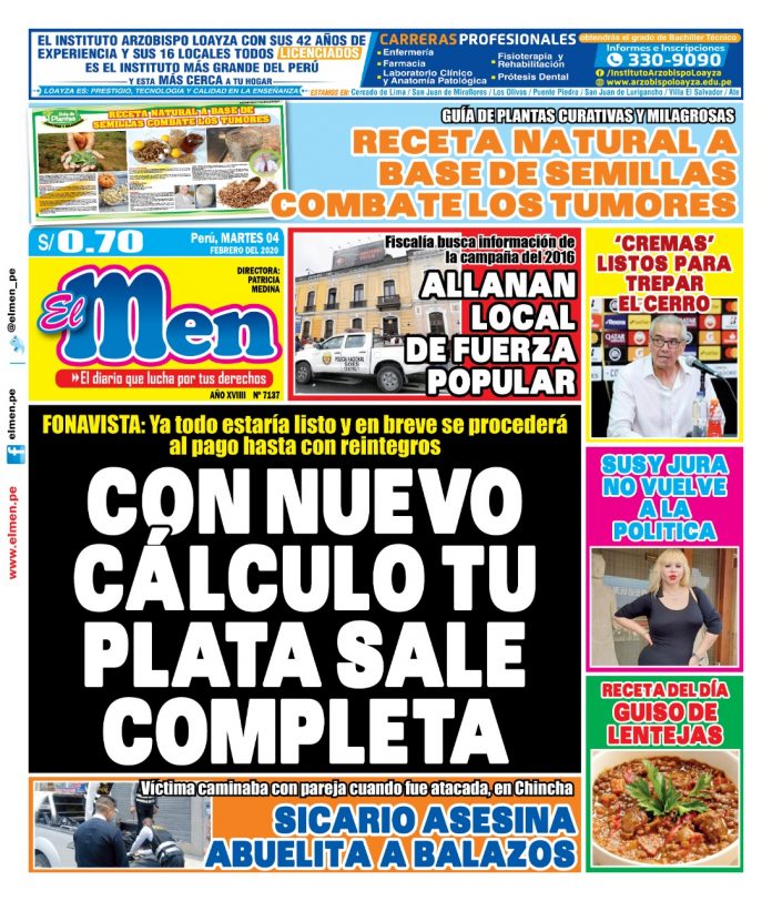 Portada impresa – Diario El Men (04/02/2020)