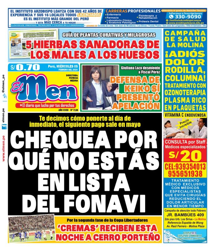 Portada impresa – Diario El Men (05/02/2020)